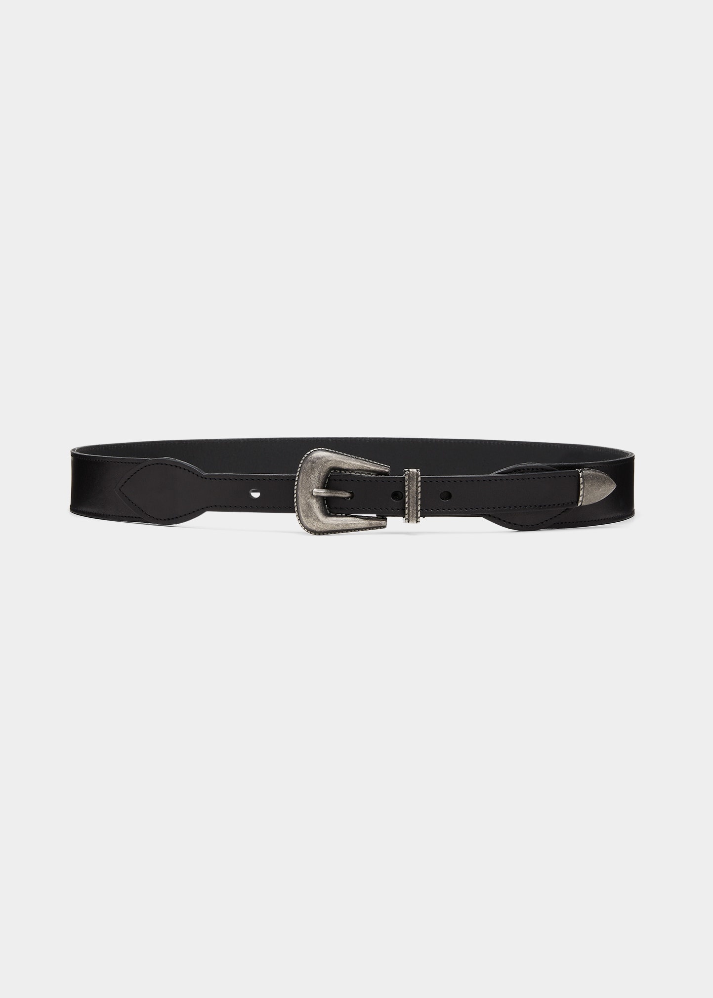 Saint Laurent leather belt with western style buckle Buckle, approx. 1.4"W Adjustable fit Calf leather/brass Wipe clean Made in Italy Online Inquiries: BGS21_D450S| Store Inquiries: #4224142
