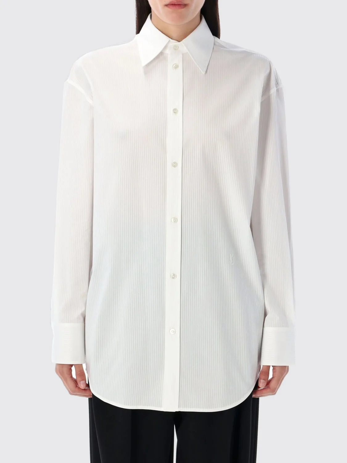 DESCRIPTION - Style: Classic - Neck: French - Shoulders: Relaxed - Sleeves: Long sleeve shirts - Closure: Concealed buttons - Bottom: With curved hemline - Materials: Cotton poplin - Pattern: Stripes DETAILS AND CARE Composition 100% cotton SIZE AND FIT Sizes not available Size and fit Relaxed fit Designer code: 835517Y3D30 9601 Giglio Code: H14976 Designer: Saint Laurent Collection: Saint Laurent Woman Category: Clothing Saint Laurent