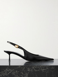 SAINT LAURENT's 'Vendome' pumps are defined by the elongated pointed toes. They've been made in Italy from glossy leather and feature slingback straps with gold-tone embellishments. The 50mm heels offer just the right amount of lift. Size & Fit Fits true to size, please refer to SAINT LAURENT size guide below: - EU 36 = UK 3/ US 6/ IT 36/ FR 37 - EU 36.5 = UK 3.5/ US 6.5/ IT 36.5/ FR 37.5 - EU 37 = UK 4/ US 7/ IT 37/ FR 38 - EU 37.5 = UK 4.5/ US 7.5/ IT 37.5/ FR 38.5 - EU 38 = UK 5/ US 8/ IT 38/ FR 39 - EU 38.5 = UK 5.5/ US 8.5/ IT 38.5/ FR 39.5 - EU 39 = UK 6/ US 9/ IT 39/ FR 40 - EU 39.5 = UK 6.5/ US 9.5/ IT 39.5/ FR 40.5 - EU 40 = UK 7/ US 10/ IT 40/ FR 41 - EU 40.5 = UK 7.5/ US 10.5/ IT 40.5/ FR 41.5 - EU 41 = UK 8/ US 11/ IT 41/ FR 42 - EU 41.5 = UK 8.5/ US 11.5/ IT 41.5/ FR 42.5 - EU 42 = UK 9/ US 12/ IT 42/ FR 43 Details & Care - Heel measures approximately 50mm/ 2 inches - Black leather (Lamb) - Elasticated slingback strap
