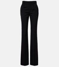These Saint Laurent pants reflect the brand's signature taste for elegant lines and elevated styles. Made from wool grain de poudre, this design flares out at the ankle and features a satin stripe down the leg. Product Details - Material: 100% wool - Care instructions: dry clean - Made in Italy - Designer color name: Noir - Item color: black - Details: 100% polyester - Pocket lining: 97% cotton, 3% elastane - Contains non-textile parts of animal origin - Closure: zipper fly, button and hook fastenings - Pockets: side slit pockets, back pockets - Belt loops - Item number: P01128072 Size & Fit - Fits small to size - we recommend trying one size larger - Non-stretchy fabric - Straight leg - High-waisted - Unhemmed for tailoring - The model seen in the picture is 178cm-5'10" and wearing a size FR 36
