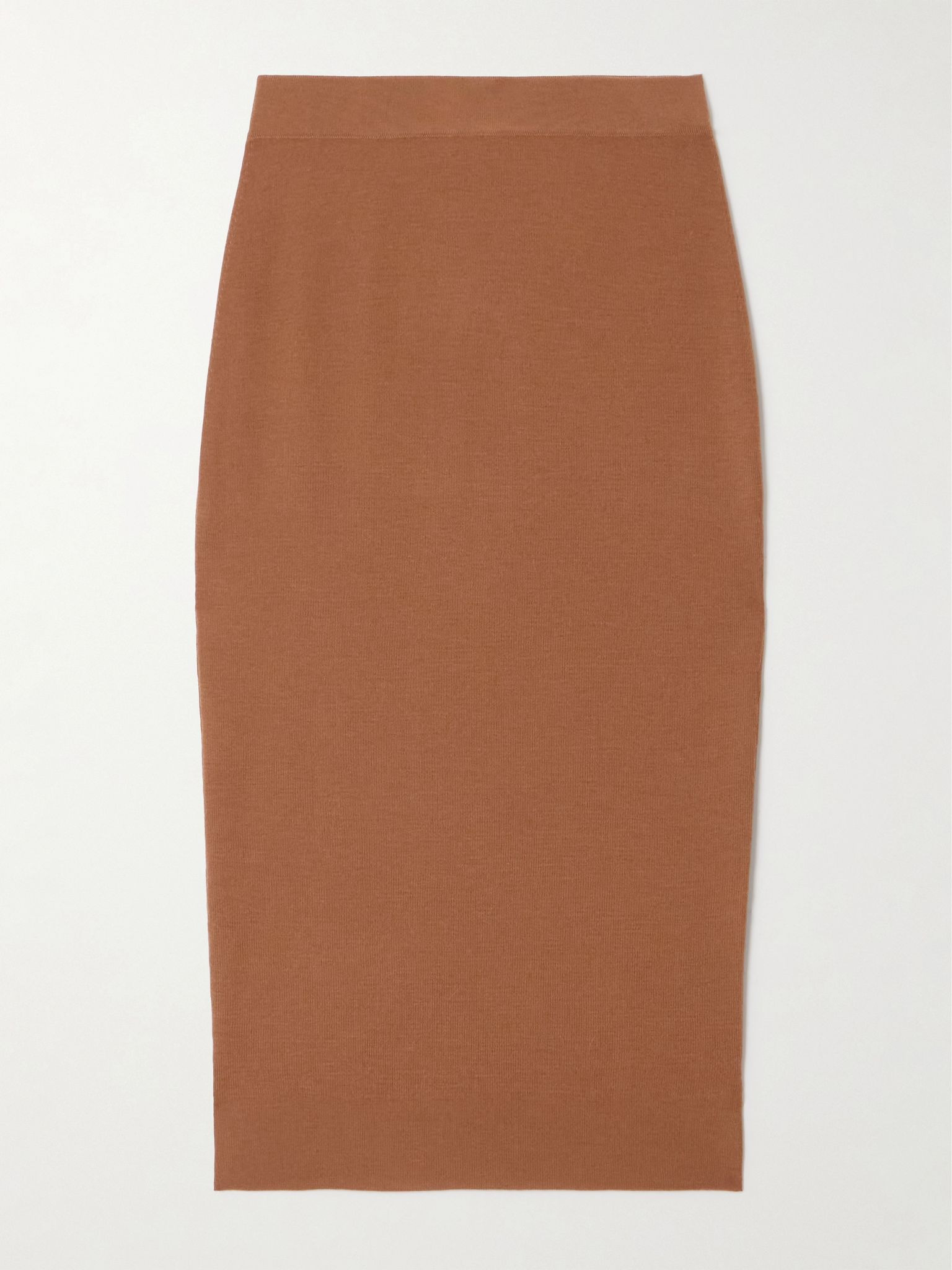 There are few items as classic and chic as SAINT LAURENT's pencil skirt. It's made from wool in a slim, figure-hugging shape that finishes just below the knee. Style yours with a tucked-in blouse and slim belt looped around the waist. Size & Fit - Fits true to size, take your normal size - Falls below the knee, designed to be worn at the waist - Elasticated at the waist for a flexible fit - Mid-weight, stretchy fabric - S/M/L sizing Details & Care - Brown wool - Zip fastening along side - 100% wool