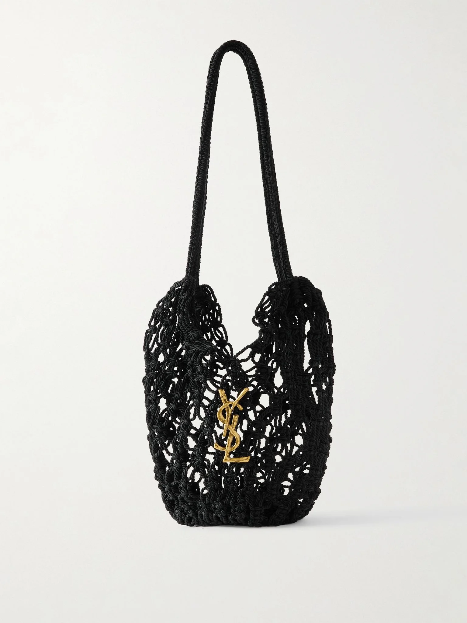 SAINT LAURENT's bag is woven from cord in an airy, open construction reminiscent of fishnet styles. It's embellished with a hammered 'YSL' logo plaque and holds enough space inside for your phone and sunglasses case. Details & Care - Black cord - Top handles - Unlined - Open top