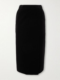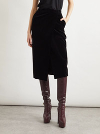 Wrap-effect cotton-velvet midi skirt Black