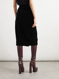 SAINT LAURENT is renowned for rich, luxurious textures, which have remained a hallmark of the brand since its inception. This midi skirt has been made in Italy from tactile cotton-velvet and has a straight, wrap-effect design with belt loops and discreet pockets. Size & Fit - Fits true to size, take your normal size - Midi-length, designed to be worn at the waist - Mid-weight, non-stretchy fabric - Model is 180cm/ 5'11" and is wearing a FR 36 Model measurements: - Bust: 79cm/ 31" - Waist: 60cm/ 23.5" - Hip: 86cm/ 34" Details & Care - Black cotton-velvet - Concealed hook and zip fastening at side - 100% cotton - Dry clean