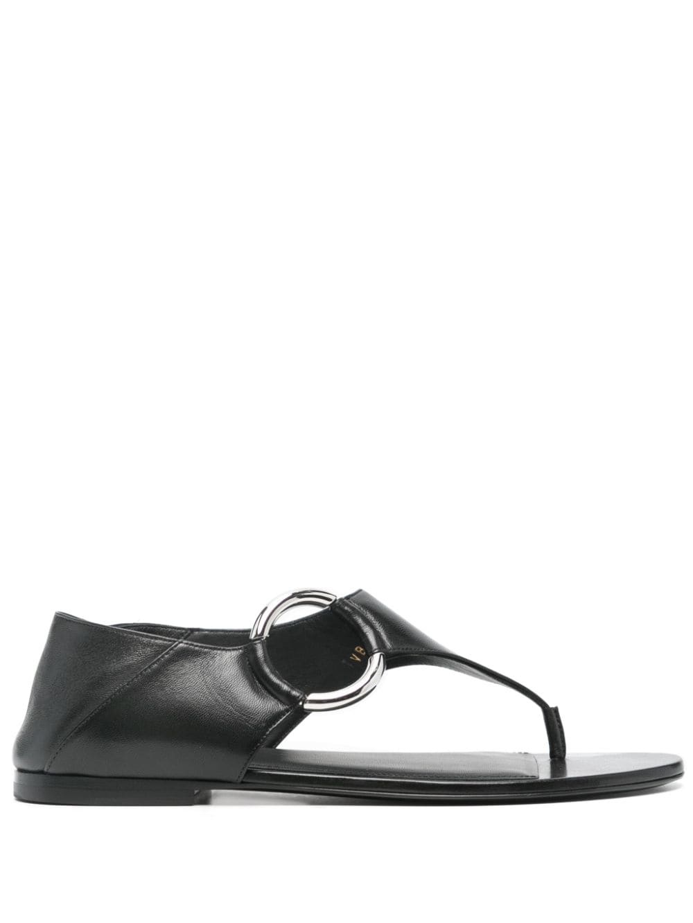 ring leather flat sandals Highlights - Black - Calf leather - Smooth grain - Round open toe - Thong strap - Silver-tone ring hardware detailing - Branded leather footbed - Flat leather sole - Slip-on style - This piece comes complete with a protective dust bag. Made in Italy Composition Sole: Calf Leather 100% Lining: Calf Leather 100% Outer: CALFSKIN 100% SIZE & FIT Measurement HEEL 0.78 in(2 cm)