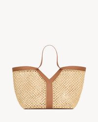 TOTE IN RAFFIA AND VEGETABLE-TANNED LEATHER. THIS ULTRA-LIGHTWEIGHT BAG DRAWS ITS NAME FROM THE SUBTLE Y SIGNATURE STITCHING INSPIRED BY THE HOUSE'S ARCHIVES. THE INTERIOR FEATURES A ZIP POCKET AND BRASS CARABINER. - BRONZE-TONE HARDWARE - HOOK CLOSURE - ONE ZIP POCKET - DIMENSIONS: 37 X 32 X 7–22 CM / 14.6 " X 12.6" X 2.8–8.7" - STRAP DROP: 26 CM / 10.2" - 90% RAFFIA 10% BRASS - STYLE ID 828957GAAFI2791 - MADE IN ITALY