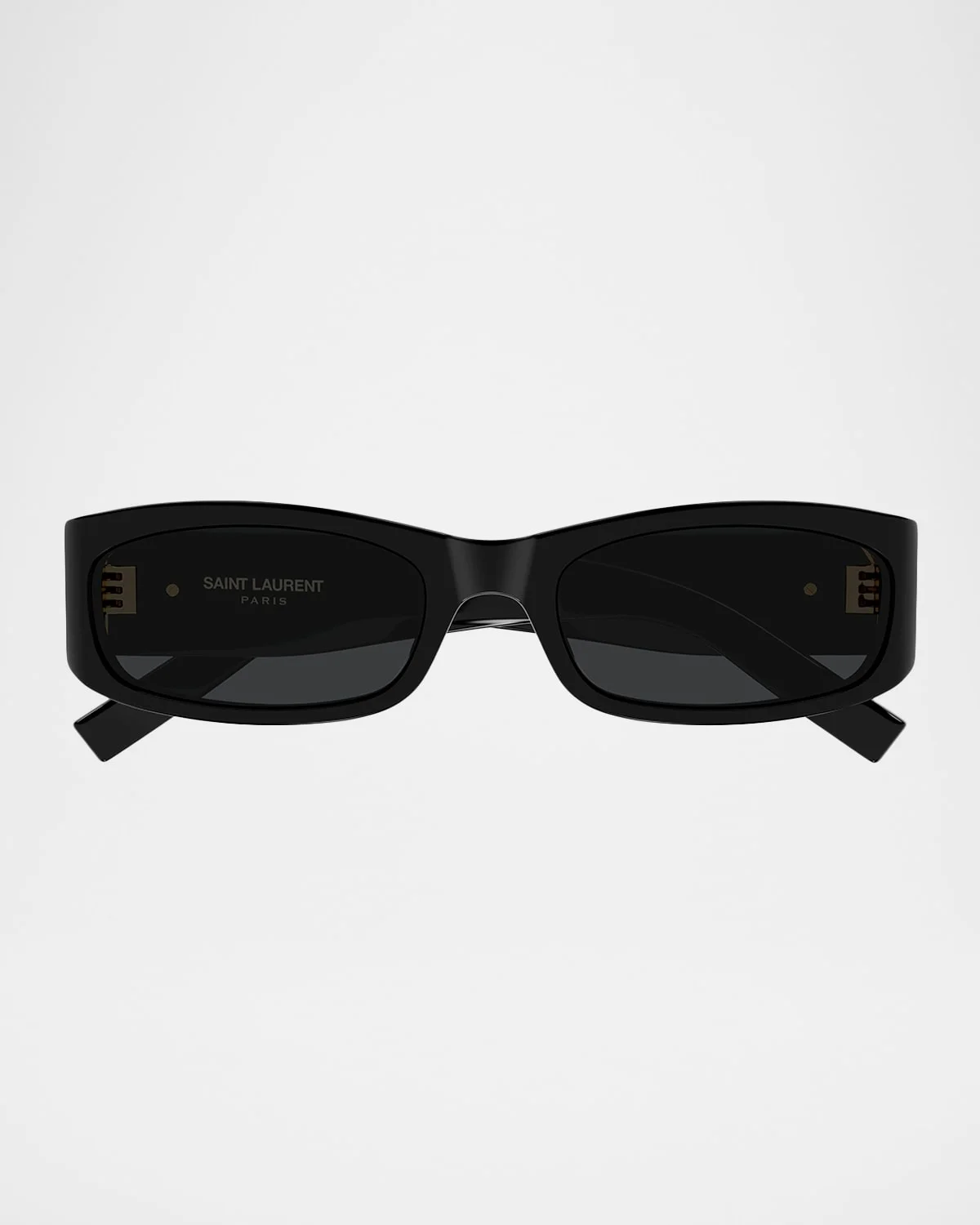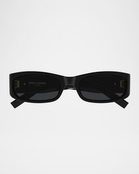 The "SL M152" acetate sunglasses by Saint Laurent feature the iconic Cassandre YSL logo at the hinges. Lens/bridge/temple (in mm): 5618130 Rectangular frames Solid lenses Fixed nose pads Wide, tapered arms Includes case and cleaning cloth 100% UVA/UVB protection Made in Italy