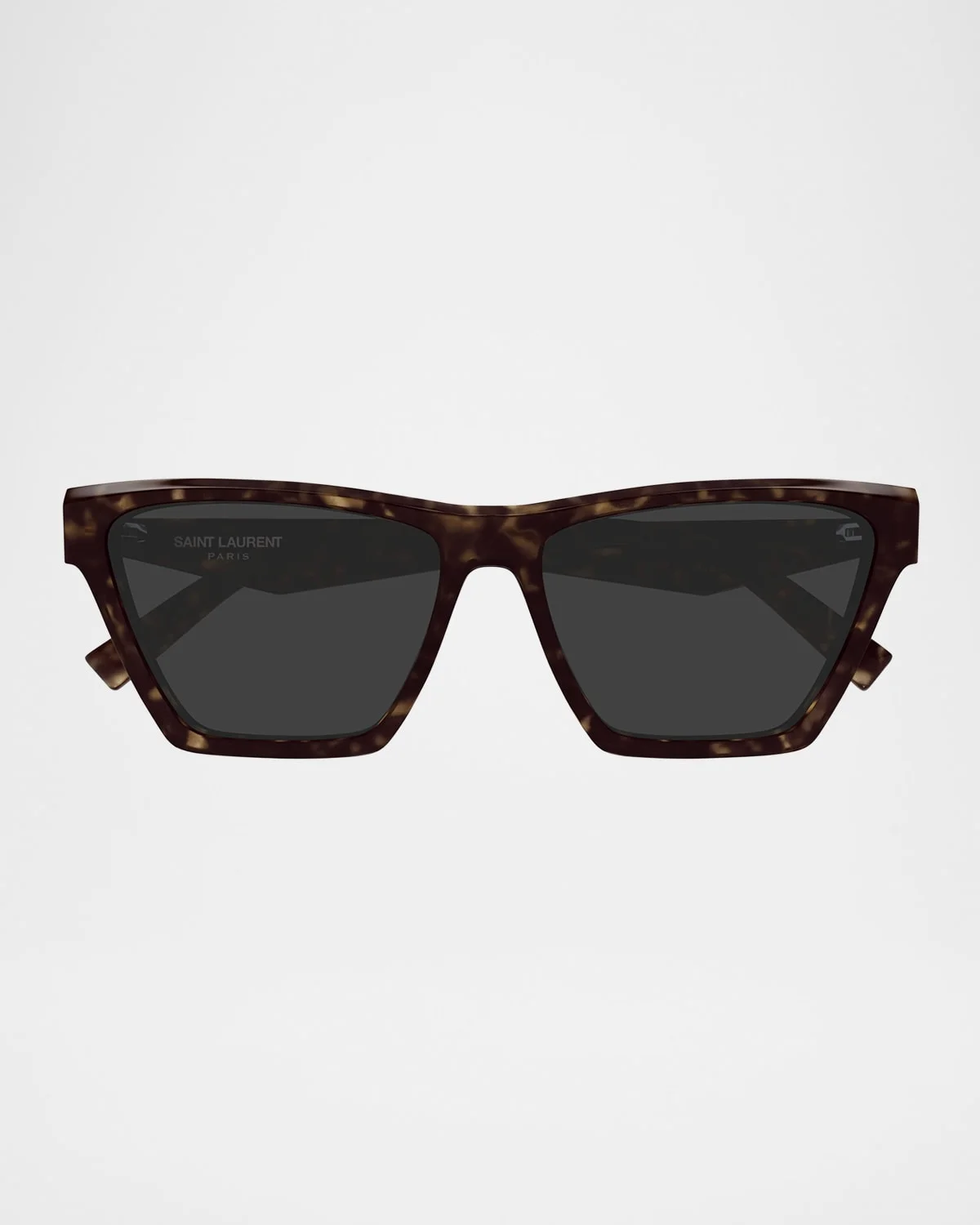 - Saint Laurent cat-eye sunglasses in acetate - Lens/bridge/temple (in mm): 58-15-145 - Features engraved YSL logo on temples - Solid-color lenses - Wide, tapered arms - 100% UVA/UVB protection - Made in Japan - Proposition 65 warning for California residents