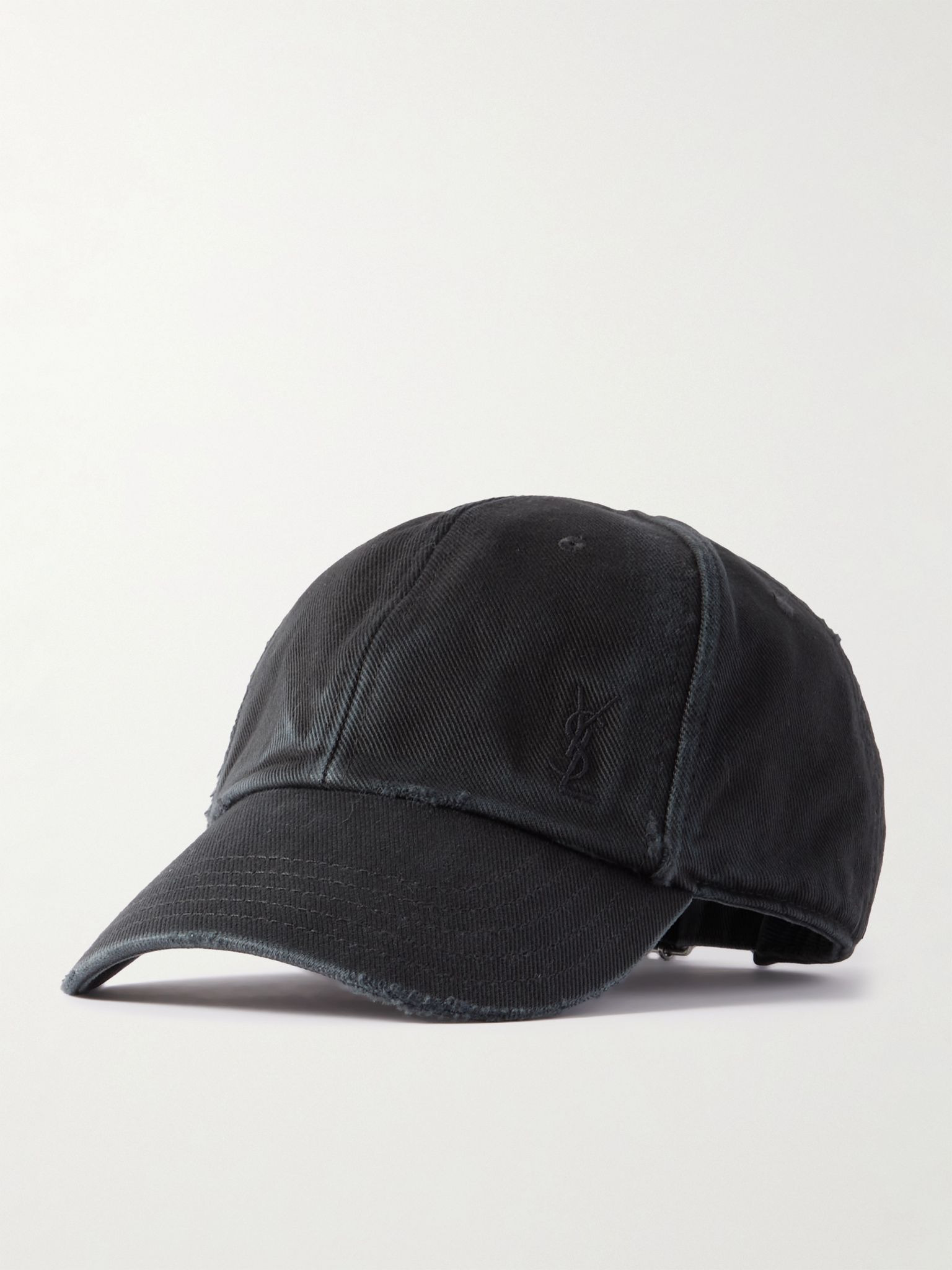 SAINT LAURENT's cap is one of the coolest ways to complete an outfit – it will look as good with relaxed tailoring as it will jeans and a tee. Made from army-green denim, it's frayed and distressed to create a time-worn, grunge feel that you'll love. Details & Care - Black denim - 100% cotton - Spot clean