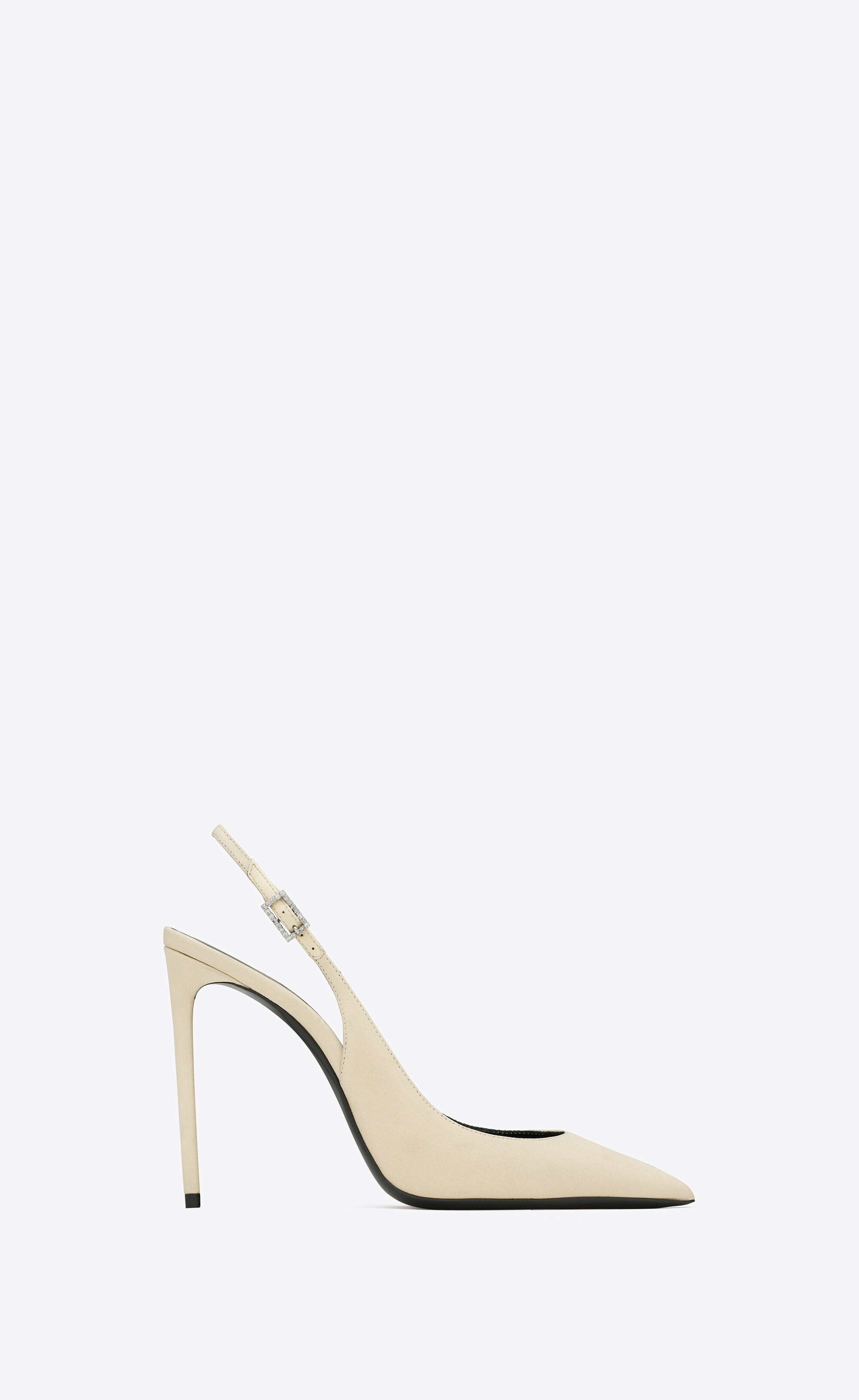 POINTED-TOE PUMPS WITH A RHINESTONE BUCKLE SLINGBACK STRAP, COVERED STILETTO HEEL AND LOW-CUT VAMP. - 100% SILK - LEATHER SOLE - TOTAL HEEL HEIGHT: 10.5 CM / 4.1 INCHES - STYLE ID 762946AAAKY9712 - MADE IN ITALY