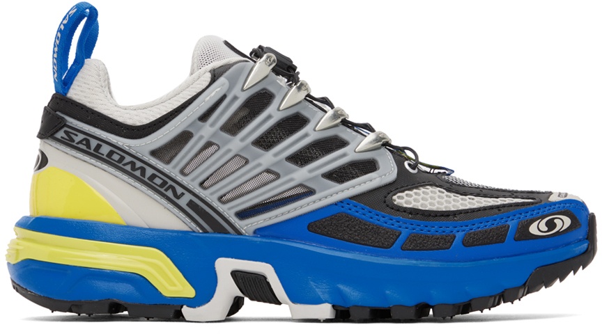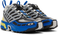 Low-top paneled mesh and canvas sneakers in blue and gray. Rubberized trim throughout. · Logo printed at toe · Quicklace™ closure · Logo patch at padded tongue · Padded collar · Pull-loop at heel collar · OrthoLite® insole · Mesh lining · Agile Chassis rubber midsole · Treaded Contagrip rubber outsole · Logo-engraved silver-tone hardware Supplier color: Lapis blue/Black/Buttercup