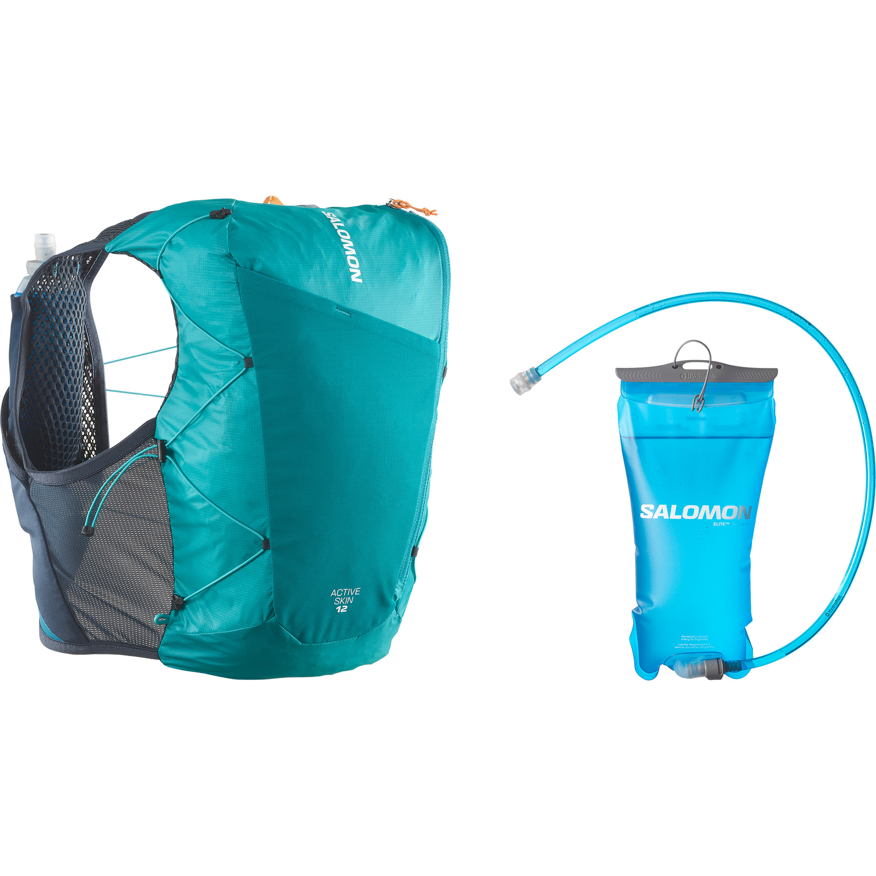 To provide a stepping stone to take your trail running to the next level for ultra-distances, we launched the ACTIVE SKIN 12 with reservoir – the biggest volume yet in this range. The fabrics are soft and breathable, the fit is ultra-secure, and the 1.5-liter bladder keeps you hydrated. What’s more, chest pockets provide effortless access to your flasks (not included). FEATURES & FABRICS - CONCEPT & TECHNOLOGY - Sensifit™: The construction uses stretch, breathable fabrics and lightweight adjustments to optimize fit and stability. - LOAD MANAGEMENT - Quick link: This sternum strap enables you to adjust your pack quickly on the fly. The elastic makes it easier to breathe when you pick up the pace. - HYDRATION: 1.5 L reservoir included - BACK SYSTEMS: 3D comfort - LOAD MANAGEMENT: Side compression laces adjustable - SHOULDER STRAPS - 3D Airmesh shoulder straps: With a construction that incorporates small cavities, 3D Airmesh panel allows enhanced air circulation. - HYDRATION - Reservoir compartment: This item contains an internal reservoir compartment with a hanging strap to hold the reservoir in place. - HYDRATION - Reservoir tube exit: Sewn-in exit port for a hydration tube. - HYDRATION: Compatible with soft flasks 500ml - POCKETS & COMPARTMENTS: 1 back compartment - POCKETS & COMPARTMENTS: 1 internal pocket - POCKETS & COMPARTMENTS - 2 front stretch pockets: Expandable front pockets to store essentials you want to access on the go. - POCKETS & COMPARTMENTS - 2 front zipped pockets: Ideal for more accessible volume - POCKETS & COMPARTMENTS: 1 back expandable mesh pocket - OPENING & CLOSURE - Large opening: Salomon bags have a large opening to make it easy to see and store your gear. - CARRYING SYSTEM - Custom quiver compatible: Upgrade your pack with the custom quiver, providing quick access and stable carrying for your poles. It's ready to connect. - CARRYING SYSTEM - Custom quiver connecting system: Hooks on the quiver connect to loops on the Sense packs. - CARRYING SYSTEM - Key holder: This elastic key chain holder makes it easy to pull keys off the bag while remaining safely attached. - FABRICS - 3D air mesh: Soft 3D mesh adapts to your body on the move, without rubbing your skin or tee-shirt. Larger holes maximize comfort and breathability. - FABRICS - Elastic power mesh: Highly stretch and breathable fabric that adapts to the body. - FABRICS - Fast wicking fabrics: Improving quick drying and moisture management, these light fabrics deliver top performance, comfort, and odor resistance. Body 100% Polyamide Lining 100% Polyamide Body insert 88% Polyamide, 12% Elastane Back insert 89% Polyamide, 11% Elastane Back body 100% Polyester Article ref. LC2205000
