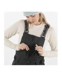 Built for daring skiers and snowboarders, our women’s BASHLEY BIB pants pack versatile water & windproof protection into a progressive 2-layer design that refuses to follow the rules – and now features 100% recycled outer fabric. Simply add or remove layers to this winter-proof shell as you shred the mountain, from snow park to backcountry. FEATURES & FABRICS - FABRICS - 2L: Fabric and membrane are bonded to one fabric. This construction usually requires a separate lining - BODY: Vents with mesh - FIT - Regular fit: On tops and bottoms, Regular fit is a wider fit than slim fit, but more fitted than relaxed fit. - WAISTBAND - Belt loops: Wide belt loops accommodate most belts. - WAISTBAND - Waist adjustment: Always a perfect fit with our infinitely adjustable waist adjustment. Can be adjusted individually to your waist size to discover pure freedom of movement - LEG: Inner fixed gaitor - POCKETS - 1 cargo pocket: 1 stylish & functional way to store gloves, beanie or any of your belongings during your outings. - POCKETS - 2 zipped hand pockets: Roomy pockets to keep your hands warm, with secure, zipped closure. - POCKETS: 1 zipped thigh pocket - POCKETS: 1 zipped pocket on the bib - WATERPROOFNESS - AdvancedSkin Dry 10K/10K: It protects you against rain, snow and wind, but allows moisture vapor to escape and keep you comfortable. It provide 10 000 mm waterproofness and breathability of 10 000 g/m²/24h. - SUSTAINABILITY: PFC-Free DWR - SUSTAINABILITY: Recycled PA face fabric Bottom length Regular Bottom 100% Polyamide Back body 85% Polyamide, 15% Elastane Lining insert 93% Polyester, 7% Elastane Pocket Lining 100% Polyester Article ref. LC2271100