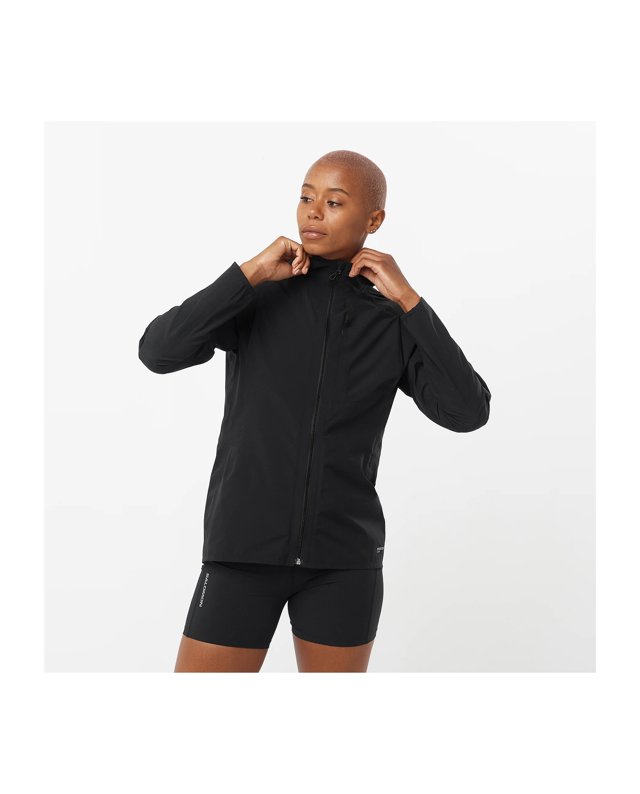 With a smart construction and seamless shoulders, the women’s BONATTI TRAIL waterproof jacket makes no compromises and is ready for the most technical trails. The premium Japanese PERTEX® fabric wraps you a lightweight layer of waterproof protection, while the optimized, women-specific fit means you can wear it over a Salomon hydration pack (12L). FEATURES & FABRICS - CONCEPT & TECHNOLOGY - Pertex® Shield: Pertex® Shield fuses technically advanced face fabrics with a breathable microporous waterproof coating. It combines durable wind and water protection with excellent breathability. - BODY - Smart vent: A little press button on the front of your jacket allows to keep your jacket in place while the vents are open. - BODY - Aero Pack System: Extra volume on the back of your jacket, allows you to wear it over a running pack. - FABRICS - Pertex Shield 2.5: Layer Ripstop 20K/20K - FABRICS: Lightweight Japanese Fabric - HOOD - Skin fit hood: A hood that fits close to the head, ideal for high-output activities when you don't wear a helmet. - HOOD - Smart hood: Minimalist construction hood that fits without draw cords or pullers. - WAISTBAND - Waist adjustment: Always a perfect fit with our infinitely adjustable waist adjustment. Can be adjusted individually to your waist size to discover pure freedom of movement - HEM - Dropped back hem: Jacket with a longer back hem, for style or added protection. - ZIP - Waterproof zip: Completely waterproof when zipped closed, waterproof zippers are essential to waterproof apparel or bags. - POCKETS - 1 chest pocket: Functional, accessible pocket to secure light items close to you. Benefits Waterproof, Water repellent treatment, Breathable Body 100% Polyamide Article ref. LC2175400