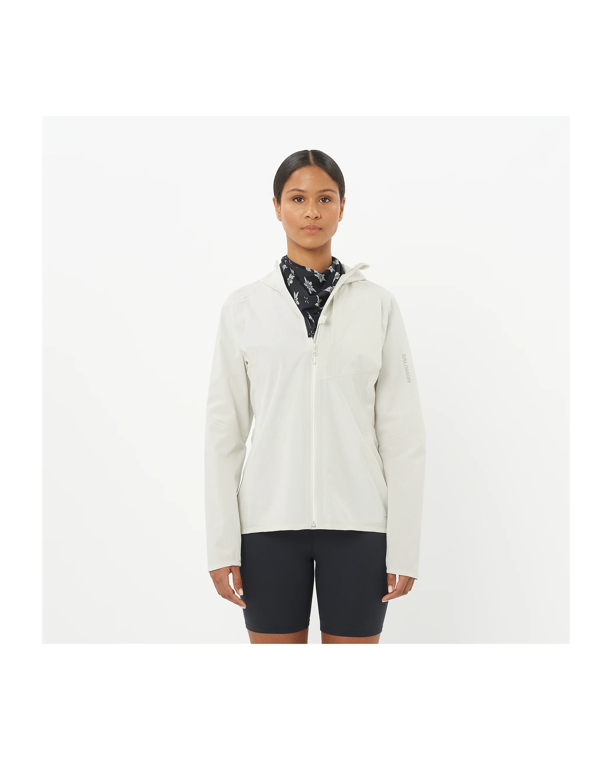 With a smart construction and seamless shoulders, the women’s BONATTI TRAIL waterproof jacket makes no compromises and is ready for the most technical trails. The premium Japanese PERTEX® fabric wraps you a lightweight layer of waterproof protection, while the optimized, women-specific fit means you can wear it over a Salomon hydration pack (12L). Article ref. LC2672900