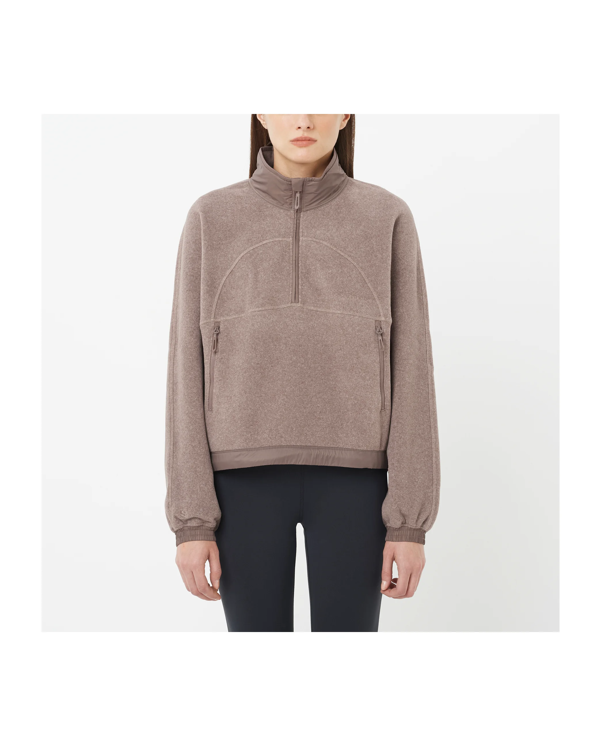 With a soft cushy feel and bold crop design, our women’s CHROMA cropped fleece pullover keeps you cozy and comfy on those chilly winter days. The double fleece traps tiny air bubbles in the fabric, so the warmth stays close to your body. What’s more, the polyester-viscose mix is made from recycled fibers to align with more sustainable values. - Best for Everyday use, Hiking , Breathable, Recycled material - Weight : 352 g - Fit : Regular Features & Fabrics - 4-way stretch fabric : Stretching in 4 directions, this fabric provides freedom to move effortlessly while maintaining stability and comfort. - Relaxed : Designed to feel slightly oversized and roomy on all uses. A good choice for those who want a little bit of extra room to move and be comfortable during activity. - Drawcord hem adjustment - 1/2 zip : Classic half-zip design for added ventilation and effortless wearability. - 2 zippered hand pockets : Cozy pockets to keep your hands warm, whether braving the cold or seeking extra comfort. - Chest logo : The distinctive chest logo, adds a signature touch to your style. A statement of identity, designed for impact and recognition Benefits : Breathable, Recycled material Care & Durability - Wash with like colours - Do not bleach - Do not dry clean - Machine wash cold (30°c) - Tumble dry low - Do not use fabric softener - Do not iron - Remove immediately Article ref. LC2641900