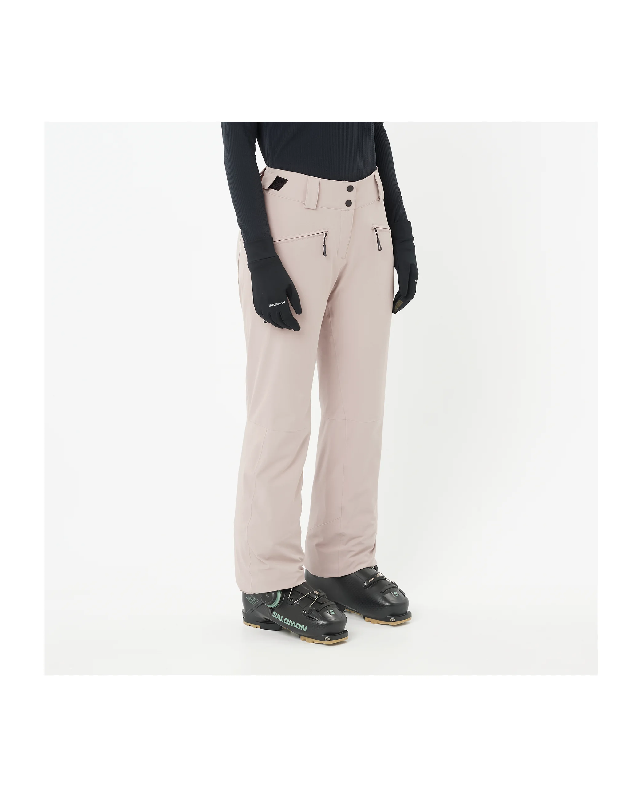 With the insulated EDGE pants, you’ll stay warm and dry all day long, wherever the slopes take you. The 10k/10k fabric keeps wind and rain out, while the 60g insulation keeps the cold at bay. We’ve packed in plenty of essential features like double-layered scuff guards, a higher back waistband and zipped front pockets. - Best for Skiing, Snowboarding , Synthetic insulation, Waterproof, Water repellent treatment, Windproof - Weight : 526 g - Fit : Regular - Key Technology : AdvancedSkin Warm Features & Fabrics - AdvancedSkin Dry : AdvancedSkin Dry Technology keeps you dry and protected from the elements, while its breathable membrane ensures optimal comfort by letting moisture escape. - DWR treatment : Durable water repellent, or DWR, is a coating added to fabrics at the factory to make them water-resistant (or hydrophobic). - Fully seam-sealed : All seams are fully sealed to keep you protected from the elements, ensuring complete waterproof protection and enhanced durability - 2L : A bonded fabric and membrane form one layer, often needing a lining for added comfort and performance. - Air vent system : Salomon air vents are designed for effortless opening to provide superior airflow, keeping you cool and comfortable during intense activity. - Regular fit : On tops and bottoms, Regular fit is a wider fit than slim fit, but more fitted than relaxed fit. - Belt loops : Designed for versatility, these wide loops fit most belts, ensuring a secure and personalized fit for any adventure. - Removable suspenders : Enjoy versatility and comfort with adjustable, detachable suspenders for the best fit. - Skicut hem protection : Durable reinforcement on the inner lower leg protects against sharp ski edges, ensuring enhanced durability and longevity - Knee articulation : The pre-shaped knee articulation is designed for optimal mobility, ensuring unrestricted movement and superior comfort - Inner fixed gaitor : A built-in snow gaiter that seals out snow and cold, ensuring a snug fit around your boots for enhanced protection comfort - 2 zipped hand pockets : A perfect balance of protection and security, offering a comfortable space for your hands while keeping your essentials safe and within reach. - AdvancedSkin Dry 10K/10K : Stay dry and comfortable in any weather with 10K waterproofing and breathability. Perfect protection against rain, snow, and wind. - Synthetic insulation 60g/m² : Regulates your body temperature for all-day warmth.Advanced fiberfill reflects and retains body heat, ensuring optimal insulation in cold conditions. - PFC-Free : To help reduce our impact on the environment, no PFC (Perfluorocarbons) are used to ensure the water repellency of our products. Inseam : 81 cm - 32″ Bottom length : Long, Regular, Short Fit : Regular Care & Durability - Cool iron - Do not bleach - Do not dry clean - Machine wash cold (30°c) - Tumble dry low - Do not use fabric softener - Wash inside out - Wash with fasteners closed Article ref. LC2615100