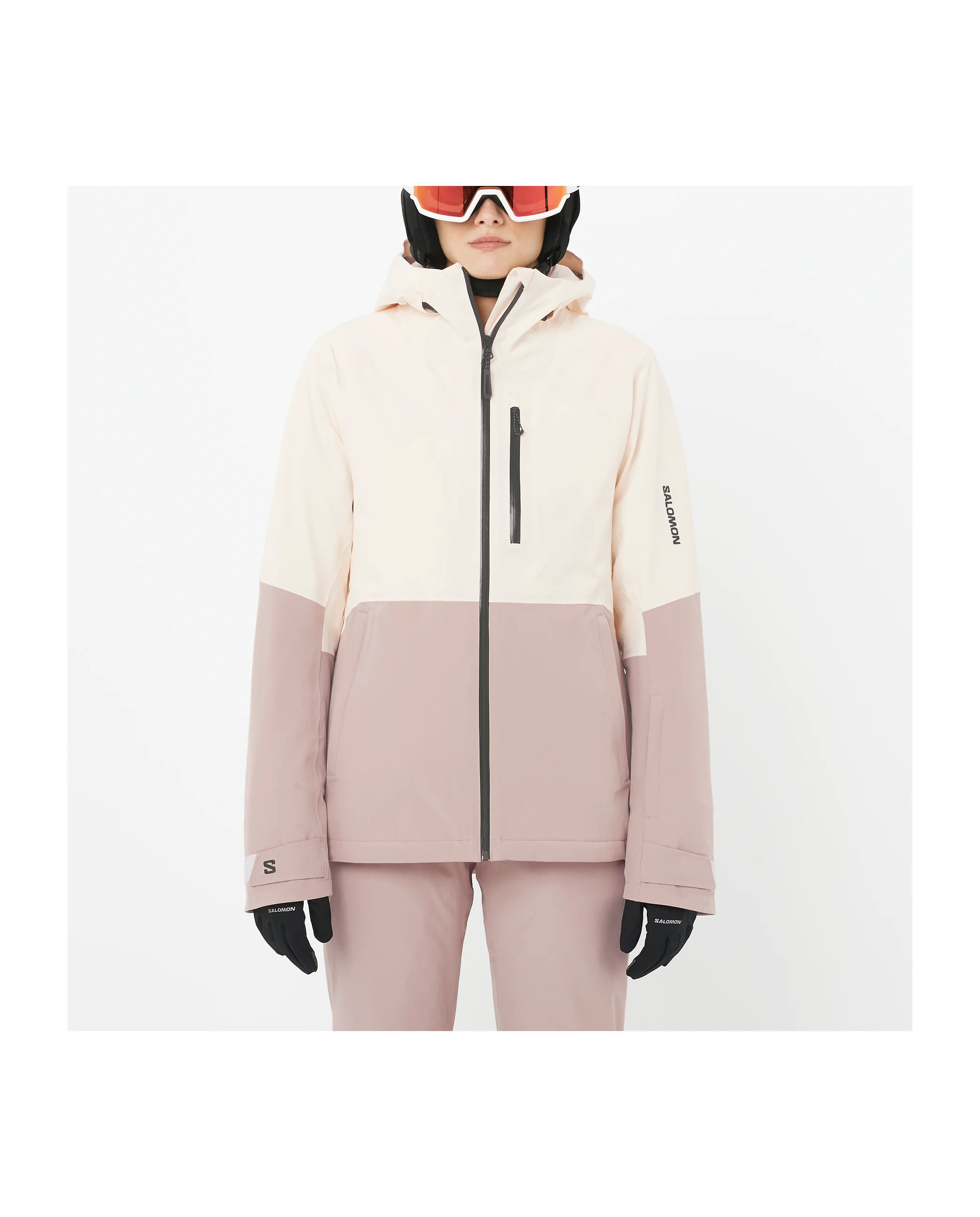 Our women’s HIGHLAND jacket rolls together everything you need in the snow, from waterproof stretch fabric to cozy PrimaLoft® insulation. So, you can ride your way around the mountain feeling dry, protected and ready for anything winter throws your way. - Best for Skiing, Snowboarding , Breathable, Waterproof - Weight : 850 g - Fit : Regular - Key Technology : AdvancedSkin Dry, PrimaLoft® Features & Fabrics - AdvancedSkin Dry : AdvancedSkin Dry Technology keeps you dry and protected from the elements, while its breathable membrane ensures optimal comfort by letting moisture escape. - PrimaLoft® : PrimaLoft® insulation delivers exceptional warmth and comfort while remaining soft and highly compressible. Designed for outdoor enthusiasts seeking performance. - Drawcords adjustable hood : Personalize your hood to fit the height and depth of your head with cinch cord, ensuring a custom fit for maximum comfort and protection - Goggle wipe : Always within reach, this built-in goggle wipe inside your chest pocket ensures clear vision by keeping your lenses clean and fog-free on the go - Powder skirt : A built-in snow skirt keeps snow out of your jacket, ensuring you stay warm and dry in any conditions. - Air vent system : Salomon air vents are designed for effortless opening to provide superior airflow, keeping you cool and comfortable during intense activity. - Regular fit : On tops and bottoms, Regular fit is a wider fit than slim fit, but more fitted than relaxed fit. - Waterproof zip : Designed to keep you dry, waterproof zippers provide a fully sealed closure, preventing water from seeping through, even in the heaviest rain - 1 internal pocket : A secure, discreet pocket inside the garment or within another pocket to keep your essentials safe and easily accessible. - 1 large mesh pocket : A close-fitting pocket that keeps your larger items secure and easily accessible. - Zippered chest pocket : A practical, zipped closure to keep your must-haves secure and always within reach. - 2 zipped hand pockets : A perfect balance of protection and security, offering a comfortable space for your hands while keeping your essentials safe and within reach. - Lift pass pocket : Convenient and functional pass pocket for effortless, hands-free scanning at the lift - Velcro cuff adjustment : Customise the fit of your cuff in seconds, to ensure a perfect seal to keep the cold the rain or the wind out. - Stretch cuffs : Streamlined cuff design for a snug fit around the wrist - AdvancedSkin Dry 10K/10K : Stay dry and comfortable in any weather with 10K waterproofing and breathability. Perfect protection against rain, snow, and wind. - PrimaLoft® 100g/m² : A high-performance synthetic insulation offering exceptional warmth-to-weight ratio and loft. Retains insulating power even when wet - PrimaLoft® Black Eco 100g/m² : PrimaLoft® Black Eco 100g/m² offers lightweight warmth made from recycled materials. Breathable, water-resistant, and ultra-compressible. - PFC-Free DWR : The PFC-free durable water-repellent finish keeps you dry while reducing environmental impact. Benefits : Breathable, Waterproof Care & Durability - Wash with like colours - Cool iron - Do not bleach - Do not dry clean - Machine wash cold (30°c) - Tumble dry low - Do not use fabric softener - Remove immediately Article ref. LC2621000