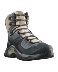 When wild places and unknown paths call, you need a backpacking shoe designed for adventures. With premium Nubuck leather, GORE-TEX protection and a higher cut, the women's QUEST ELEMENT GORE-TEX protects you from obstacles and the elements. While the lightweight construction and stabilizing chassis keep you agile at every step. Lacing system Regular laces Waterproofness GORE-TEX Lining Textile Inlay sole Textile Outsole Rubber Upper (MCL) Leather Article ref. L41457400