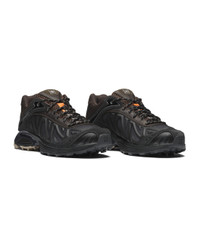 Strong in Salomon DNA, heir to an XT design lineage, XT-WHISPER is provocatively textured and rich in layered call-outs and product finish. High on contrasting details, modernised through a rich material upper, with a unique wavy Sensifit™ application paired with Quicklace for foothold and confidence-inspiring fit. - Drop Value:11 MM - Weight per unit:12 OZ Features & Fabrics Lacing System - Regular laces : Traditional lacing system with eyelets. Inlay Sole - Textile Lining - TEXTILE 100%POLYESTER Outsole - Rubber Upper - Textile / Leather Chassis - agileChassis System : ACS provides stability and dampening and works in concert with the EnergyCell midsole. Insole - OrthoLite® diecut sockliner : Cut to the shape of the inner shoe, this OrthoLite® insole provides superior cushioning, breathability and durability, upgrading the comfort and performance of the footwear. Lining Fabrics - Textile Lining : A soft, breathable lining for extreme comfort. Material - Nubuck leather : Quality full-grain leather material for longer wear and durability. - 3D Mesh : 3D open Mesh provides maximum breathability. Outsole Type - Chevron lugs : Lug design with deep penetration and multi-directional grip, improving traction on soft surfaces like mud or loose dirt. - Mud contaGRIP® : Built for maximum grip on loose, soft, rugged, and uneven surfaces, Mud contaGRIP® uses deep, sharp lugs made from a compound that focuses on adhesion. Upper Construction - Protective Toecap - sensiFIT™ : sensiFIT™ cradles the foot from the midsole to the lacing system, providing a secure, snug, and virtually customized fit all around the foot. Article ref.L49129700