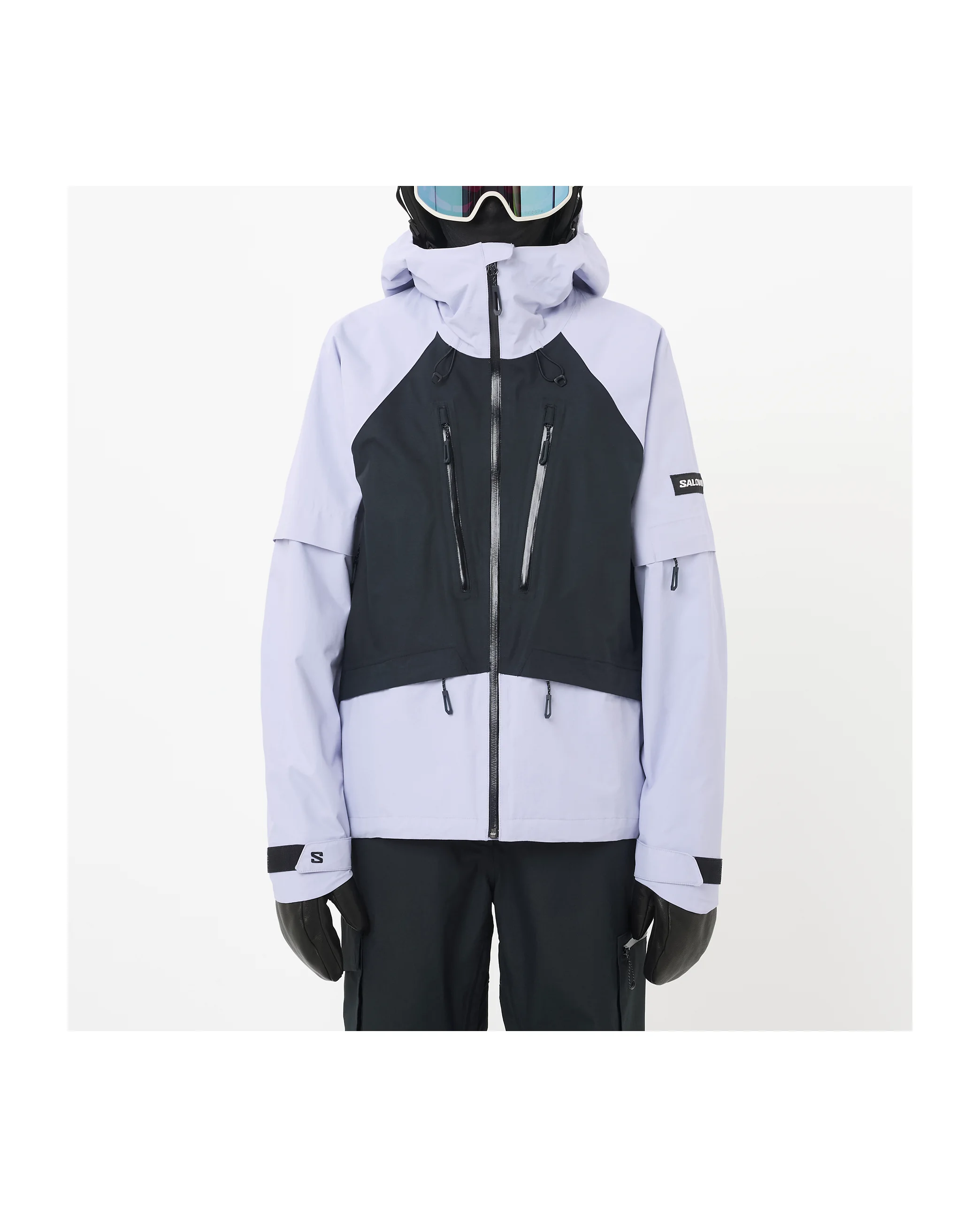 Salomon's non-insulated Venom Full Zip jacket is a women's shell jacket that combines style and function. Made with 10K/10K fabric for better protection, it easily transitions from park adventures to city streets. The multiple pockets store all your essentials and the relaxed fit ensures total comfort - size it up or down depending on your style. - Best for Skiing, Snowboarding , Breathable, Lightweight, Waterproof, Water repellent treatment, Windproof - Weight : 688 g - Fit : Relaxed Features & Fabrics - Fully seam-sealed : All seams are fully sealed to keep you protected from the elements, ensuring complete waterproof protection and enhanced durability - 2L : A bonded fabric and membrane form one layer, often needing a lining for added comfort and performance. - Drawcords adjustable hood : Personalize your hood to fit the height and depth of your head with cinch cord, ensuring a custom fit for maximum comfort and protection - Helmet compatible hood : Stay fully protected and move freely, even with the hood comfortably fitting over your helmet. - Goggle wipe : Always within reach, this built-in goggle wipe inside your chest pocket ensures clear vision by keeping your lenses clean and fog-free on the go - Powder skirt : A built-in snow skirt keeps snow out of your jacket, ensuring you stay warm and dry in any conditions. - Relaxed : Designed to feel slightly oversized and roomy on all uses. A good choice for those who want a little bit of extra room to move and be comfortable during activity. - YKK® water-resistant zippers : YKK® water-resistant zippers provide reliable, smooth performance while keeping moisture out, ensuring enhanced protection - 2 zipped hand pockets : A perfect balance of protection and security, offering a comfortable space for your hands while keeping your essentials safe and within reach. - 2 zipped chest pockets - Lift pass pocket : Convenient and functional pass pocket for effortless, hands-free scanning at the lift - Sleeve logo : The distinctive sleeve logo, adds a signature touch to your style. A statement of identity, designed for impact and recognition - Velcro cuff adjustment : Customise the fit of your cuff in seconds, to ensure a perfect seal to keep the cold the rain or the wind out. - AdvancedSkin Dry 10K/10K : Stay dry and comfortable in any weather with 10K waterproofing and breathability. Perfect protection against rain, snow, and wind. - PFC-Free DWR : The PFC-free durable water-repellent finish keeps you dry while reducing environmental impact. Benefits : Breathable, Lightweight, Waterproof, Water repellent treatment, Windproof Care & Durability - Do not bleach - Do not dry clean - Machine wash cold (30°c) - Tumble dry low - Do not iron - Remove immediately - Wash with fasteners closed - Do not use powder detergent or fabric softener Article ref. LC2653100