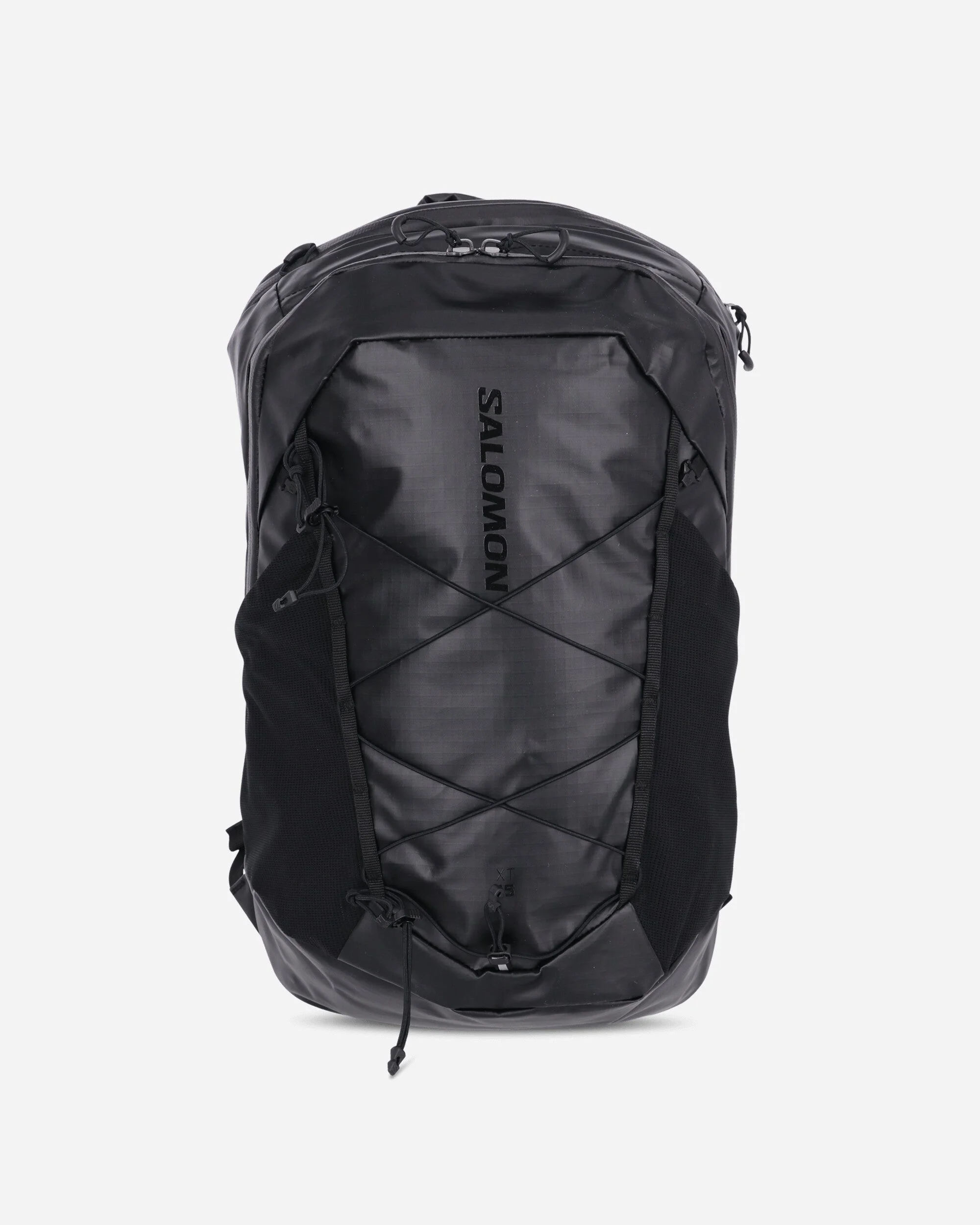 Salomon XT 15 OG Backpack Black Drawing on Salomon's trail running expertise, the brand created a collection of bags that combine technical hiking features & fabrics with urban codes ready for your commutes – and other adventures. With ultra-resistant fabric and strategic storage, XT15 OG has a bold look and design that resists weather and wear & tear – and keeps your essentials safe. - 58% Thermoplastic Polyurethane, 42% Polyamide - Carry Handle on Top - Two-Way Main Zip Compartment - Printed Logo - Interior Pocket - Padded Back - Adjustable Shoulder Straps - Capacity: 15L - Style Code: LC2868000 SIZE & FIT 15cm Width, 26cm Depth.