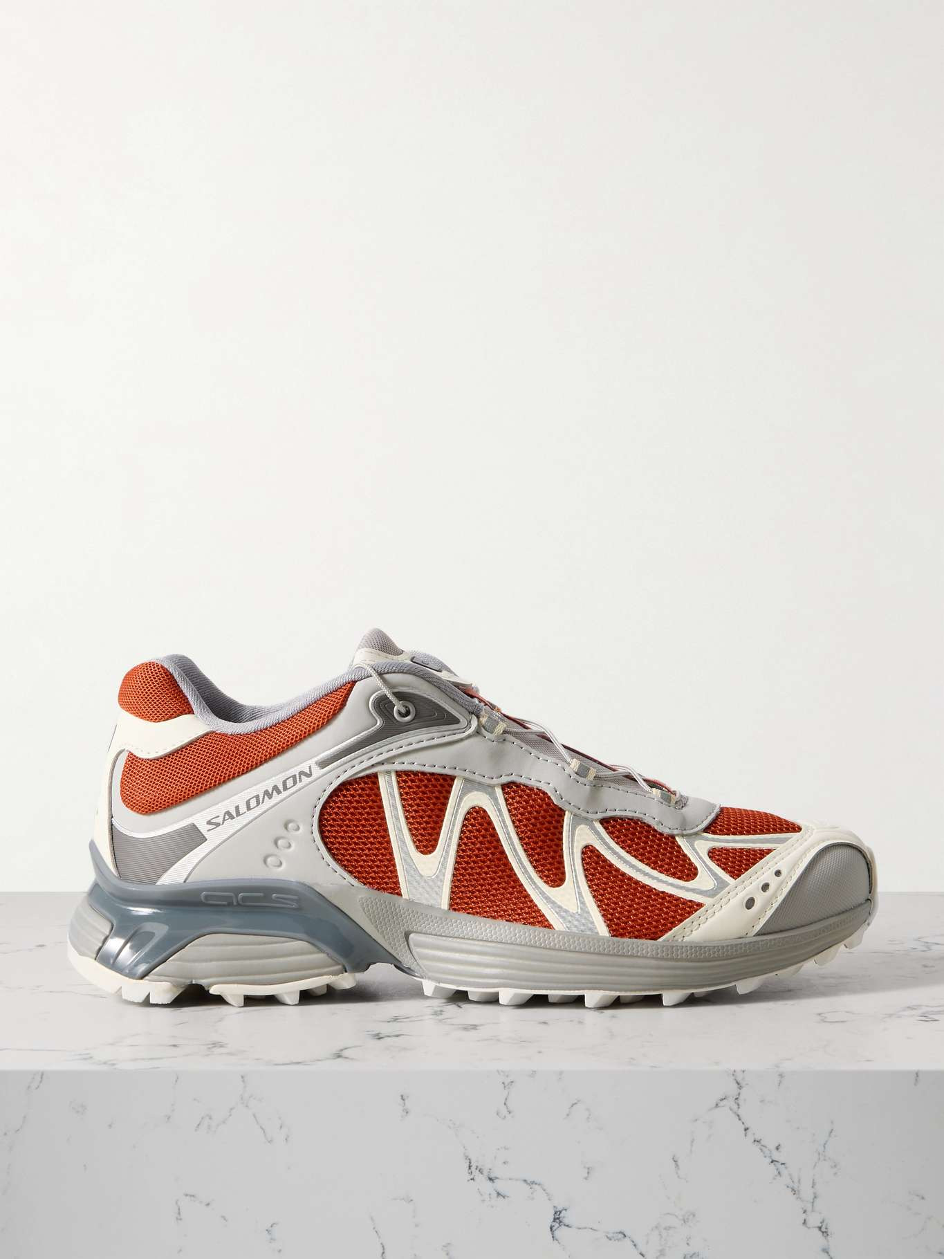 EDITORS'NOTES Salomon's sneakers are known for combining performance innovation with modern design. This 'XT-Whisper' pair is made from mesh and trimmed with durable rubber, and features the brand's signature Sensifit™ construction with a toggle lacing system that offers quick adjustments. SIZE & FIT Fits true to size, please refer to Salomon size guide below: - UK 4 = US 5.5/ EU 36.7 - UK 4.5 = US 6/ EU 37.3 - UK 5 = US 6.5/ EU 38 - UK 5.5 = US 7/ EU 38.7 - UK 6 = US 7.5/ EU 39.3 - UK 6.5 = US 8/ EU 40 - UK 7 = US 8.5/ EU 40.7 - UK 7.5 = US 9/ EU 41.3 - UK 8 = US 9.5/ EU 42 - UK 8.5 = US 10/ EU 42.7 - UK 9 = US 10.5/ EU 43.3 - UK 9.5 = US 11/ EU 44 - UK 10 = US 11.5/ EU 44.7 DETAILS & CARE - Rubber sole measures approximately 35mm/ 1.5 inches - Brick and gray mesh, tonal-gray and white rubber - Toggle fastening at front - Designer color: Burnt Ochre/ Alloy/ Vanilla Ice - Salomon follows its own size guide, therefore the size stated on the box will differ from the one provided in our size chart. To receive your correct fit, please refer to Size & Fit notes
