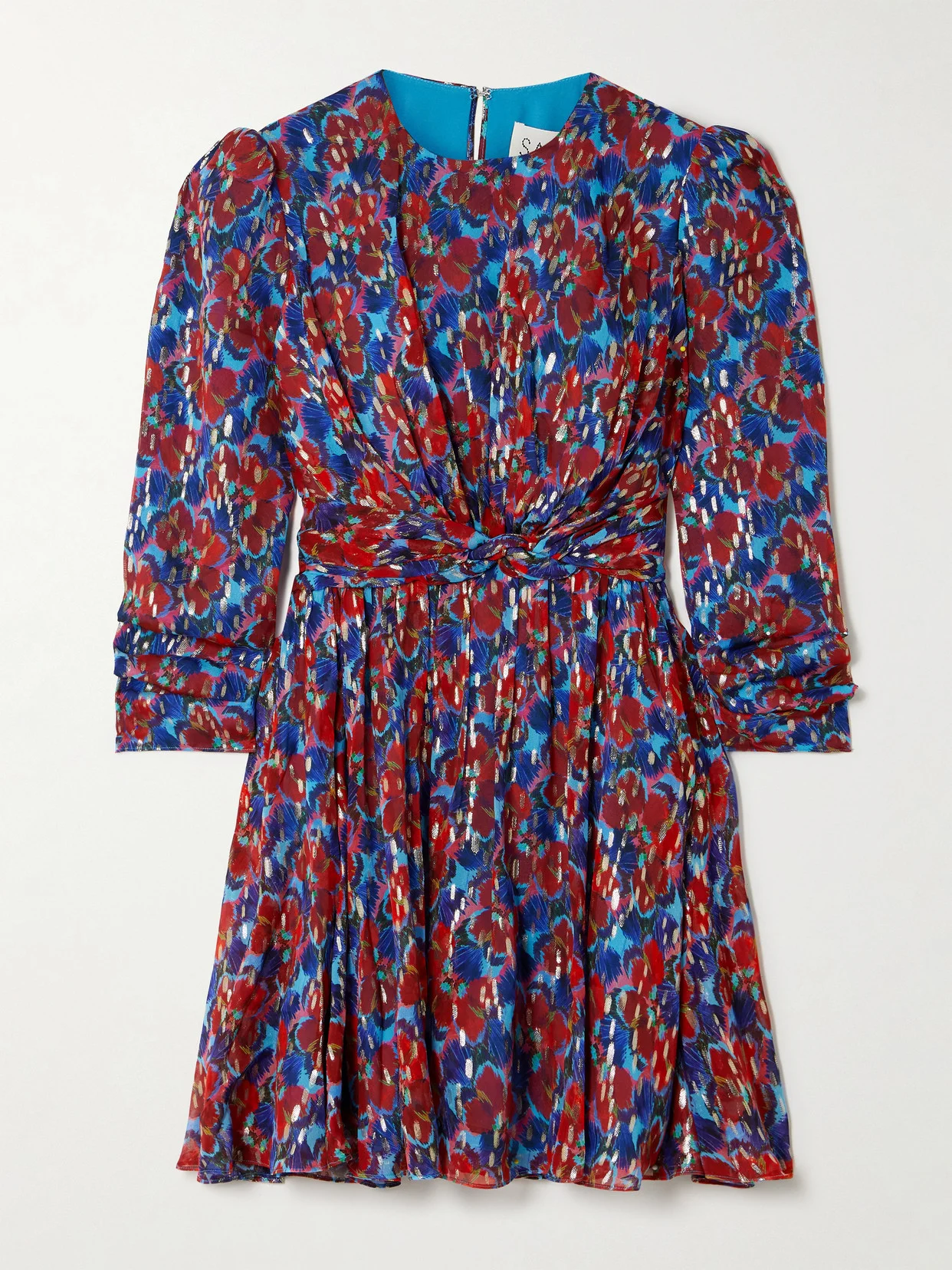 Blythe-b Knotted Floral-print Metallic Silk-georgette Mini Dress