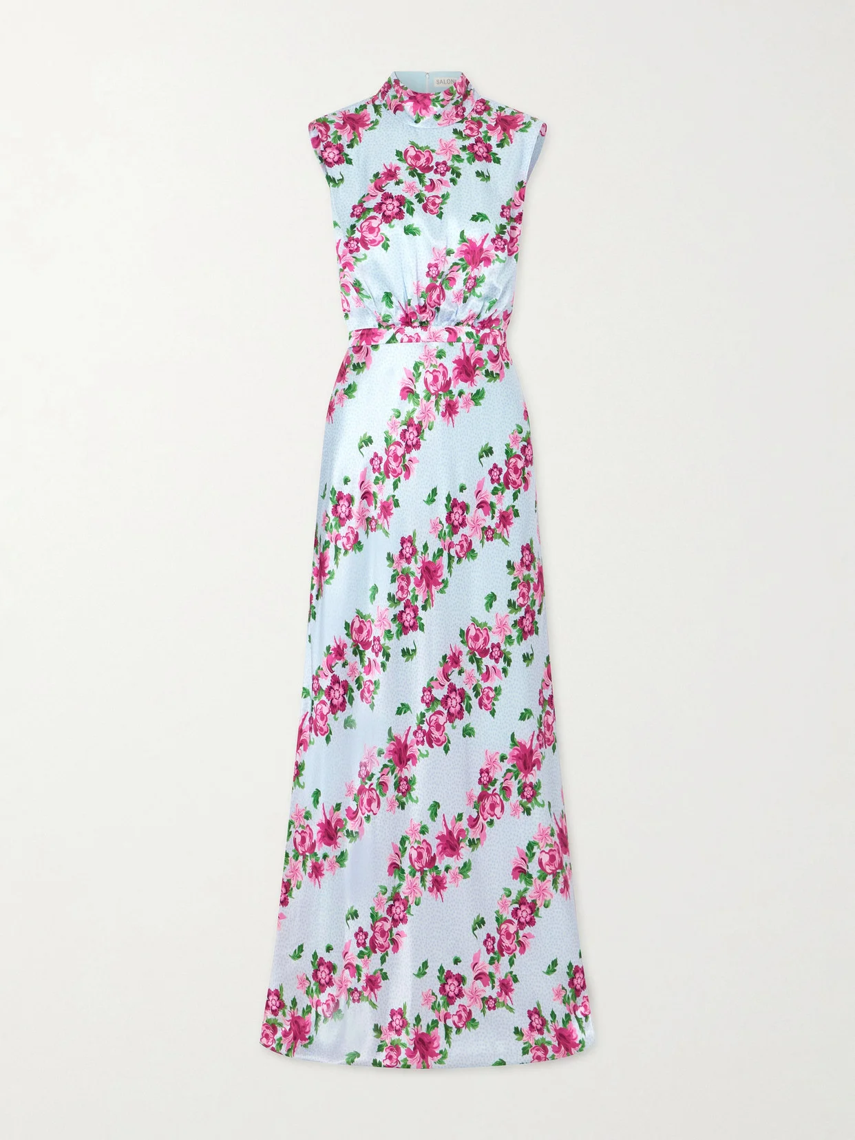 Saloni's 'Fleur' gown embodies timeless elegance. It's made from satin printed with gorgeous florals and falls to a floor-sweeping length. Style yours with diamond drop earrings and heels.