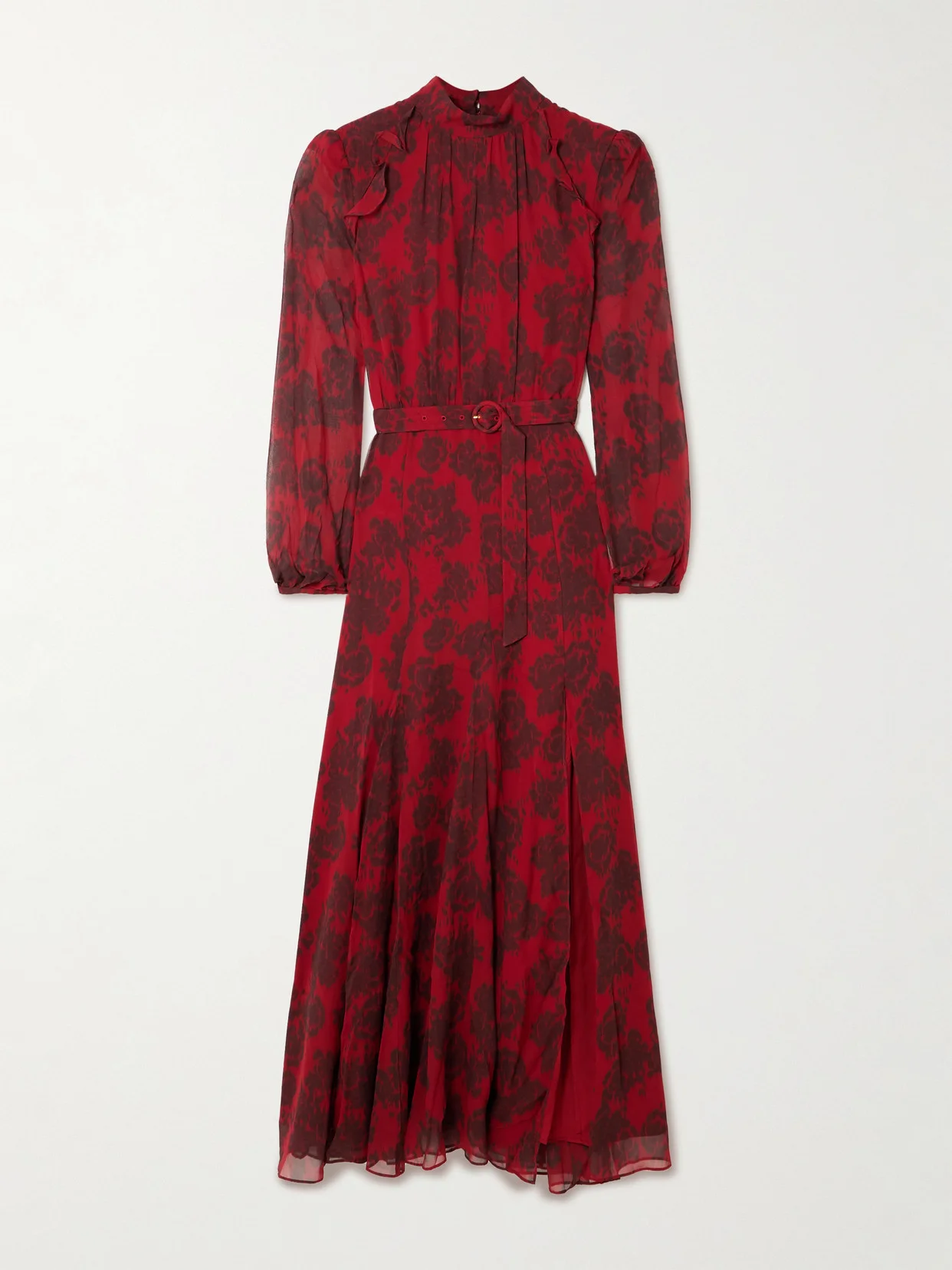 EXCLUSIVE AT NET-A-PORTER. Saloni's designs are created to empower you to "experience the joy of living life in different hues." Decorated in a pretty rose motif, this 'Jacqui-B' maxi dress is cut from silk crepe de chine with puffed sleeves and a gathered high neckline. It has a coordinating belt that cinches the waist and falls to a flowy, split hem. Large to size. See Size & Fit notes.