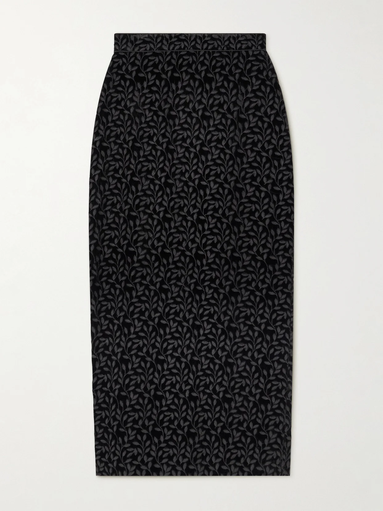 Nat Satin-trimmed Embroidered Velvet Midi Skirt