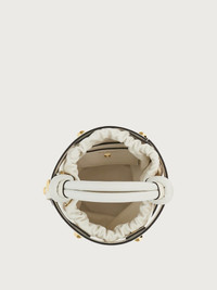 The possibilities are endless with the new Ferragamo drawstring bucket bag: capacious yet compact, rigid, yet unstructured, the included inner leather pouch is tone on tone and can be swapped with different designs, available for purchase separately, to brighten your look and play with your style. The external leather cage is punctuated by metallic studs, while the tubular handles and drawstring soften the shapes. Innovative and truly unique. - Composition: calf leather - Made In ITALY