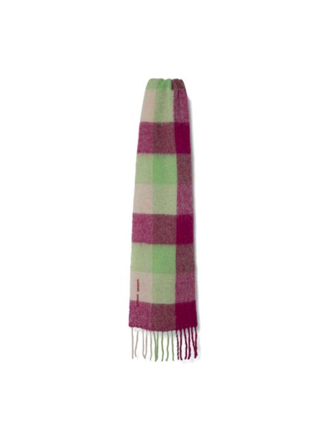 Alex checked fringed scarf Highlights - Grey - Checked pattern - Fringed edges - Embroidered logo Made in Italy Composition Mohair 28%, Alpaca 28%, Wool 24%, Polyamide 20% SIZE & FIT Measurement LENGTH 82.67 in(210 cm) WIDTH 13.38 in(34 cm)
