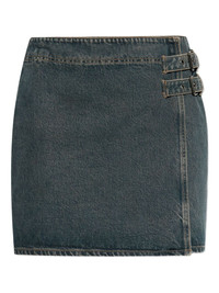 buckle mini skirt Highlights - Blue - Buckle detail - Topstitch detail - Wrap design - Mini length Imported Composition Cotton 100% Washing instructions Read Manufacturer Guidelines