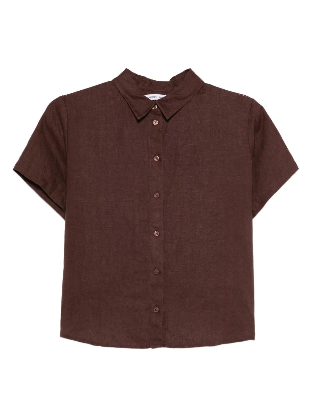 button-front linen shirt Highlights - Brown - Linen - Short sleeves - Collared neck - Button fastening Imported Composition Linen/Flax 100% SIZE & FIT Model measurements Height 5 ft 9 in(1.76 m) Bust/Chest 32.28 in(82 cm) Hips 35.43 in(90 cm) Waist 25.19 in(64 cm) Washing instructions Machine Wash