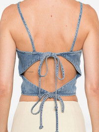 drawstring denim top Highlights - Denim blue - Spaghetti straps - Square neck - Rear tie fastening - Cropped length Imported Composition TENCEL™ Lyocell (LENZING) 100% SIZE & FIT Model measurements Height 5 ft 9 in(1.76 m) Bust/Chest 32.28 in(82 cm) Hips 35.43 in(90 cm) Waist 25.19 in(64 cm) Washing instructions Hand Wash
