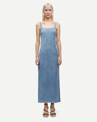 The Sasunna Dress in Denim Blue by Samsoe Samsoe is a bias-cut maxi dress with a slim fit and slit at the side. This product contains TENCEL™ Lyocell, certified with the EU Ecolabel for textile products (licence no. AT/016/001) for environmental excellence. - The High Point Shoulder length is 112,3 cm on a size S - 100% TENCEL™ Lyocell - #F25200078