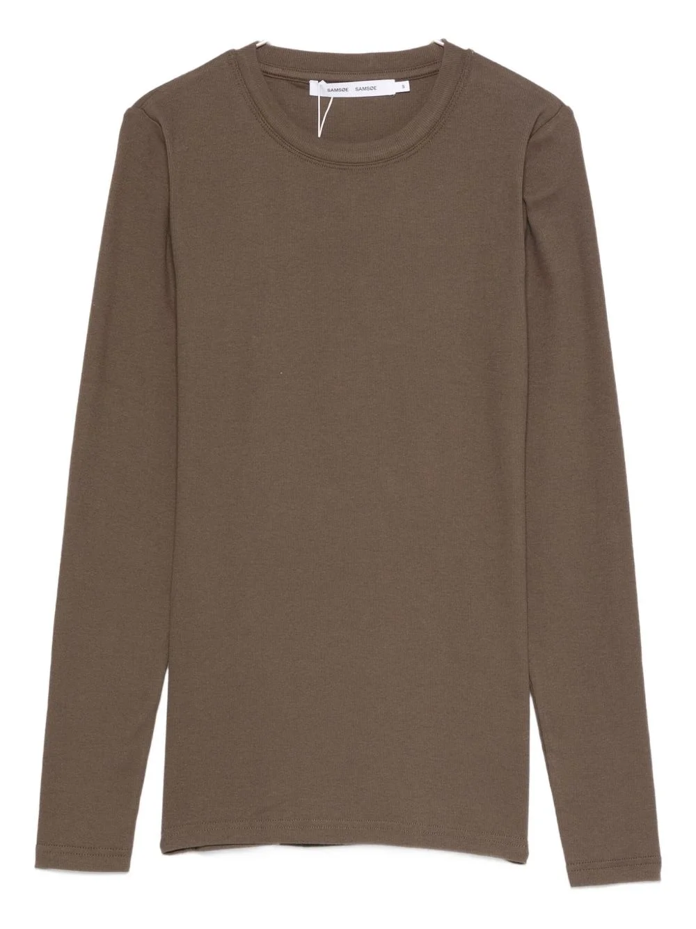 fine-ribbed T-shirt Highlights - Brown - Round neck - Long sleeves Imported Composition Organic Cotton 95%, Elastane 5% SIZE & FIT Model measurements Height 5 ft 10 in(1.77 m) Bust/Chest 32.28 in(82 cm) Hips 35.03 in(89 cm) Waist 25.19 in(64 cm) FittingInformation Designed for a close fit throughout Made from a midweight stretch fabric, this piece offers elasticity and flexibility when worn Washing instructions Read Manufacturer Guidelines