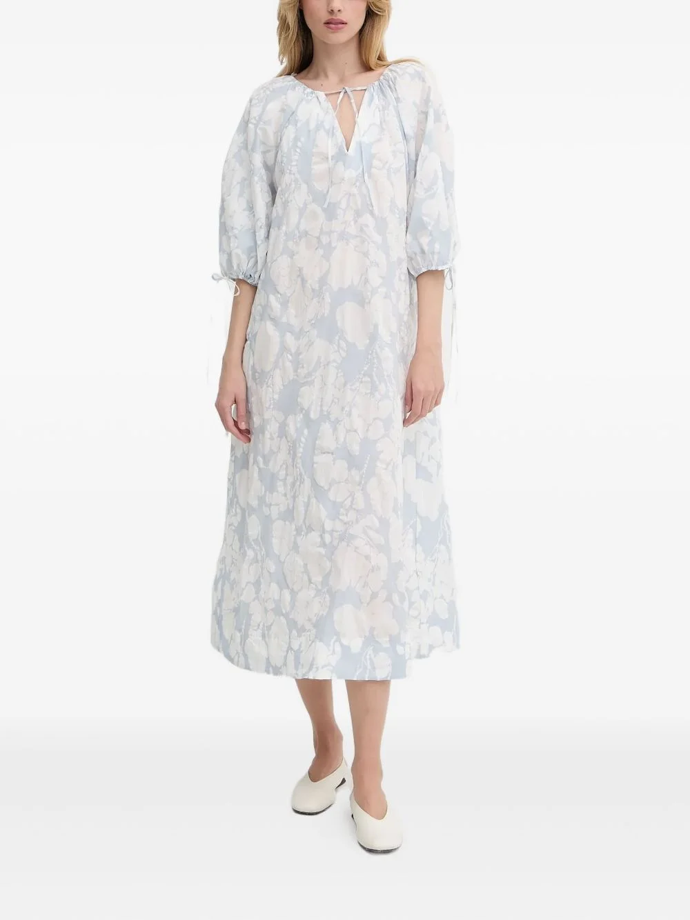 floral-pattern tie-detail midi dress Highlights - Light blue - Floral print - Tie detail - Three-quarter sleeves Imported Composition Organic Cotton 100% Washing instructions Read Manufacturer Guidelines
