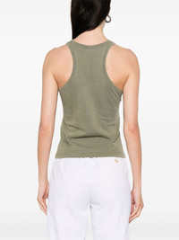 Helene tank top Highlights - Olive green - Crew neck - Sleeveless - Racerback Imported Composition Organic Cotton 100% SIZE & FIT Model measurements Height 5 ft 10 in(1.78 m) Bust/Chest 33.46 in(85 cm) Hips 36.22 in(92 cm) Waist 23.22 in(59 cm) FittingInformation Designed for a slim fit that sits just away from the body offering a close yet comfortable fit Made from a lightweight non-stretch fabric, this piece offers minimal elasticity when worn