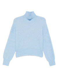 high-neck boxy sweater Highlights - Light blue - High neck - Boxy shape - Long sleeves - Ribbed hem - Subtle texture Imported Composition Alpaca 32%, Wool 32%, Polyester 30%, Spandex/Elastane 6% Washing instructions Read Manufacturer Guidelines