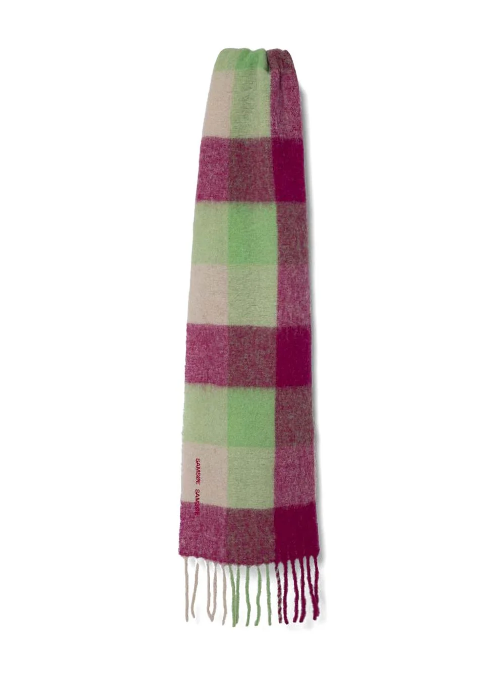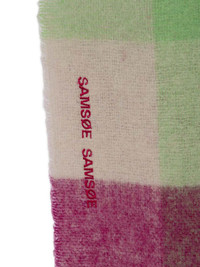 logo-embroidered scarf Highlights - Pink - Check pattern - Fringed edge Imported Composition Mohair 28%, Alpaca Wool 28%, Wool 24%, Polyamide 20% SIZE & FIT Measurement LENGTH 86.61 in(220 cm) WIDTH 13.77 in(35 cm)