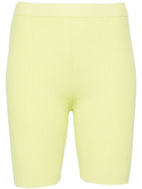 Luna ribbed shorts Highlights - Fluorescent green - Ecovero™ blend - Stretch-design - Fine ribbed - High-waisted - Elasticated waistband - Straight hem - Thigh-length Imported Composition EcoVero Viscose (LENZING) 52%, Polyester 26%, Polyamide 22% SIZE & FIT Model measurements Height 5 ft 10 in(1.78 m) Bust/Chest 33.07 in(84 cm) Hips 36.61 in(93 cm) Waist 24.8 in(63 cm) FittingInformation Designed for a close fit throughout The elasticated waist allows for a comfortable fit Made from a lightweight stretch fabric, this piece offers elasticity and flexibility when worn This piece fits true to size – take your usual size