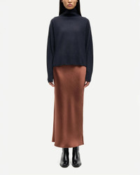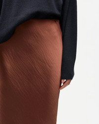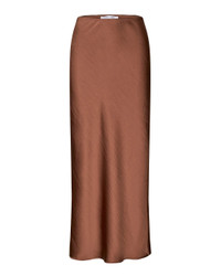 The Saagneta Long Skirt in Recycled Polyester in the color Tortoise Shell by Samsoe Samsoe is a satin maxi skirt that features an elasticated waistband and a slim fit silhouette. Your perfect staple skirt for your fall wardrobe.