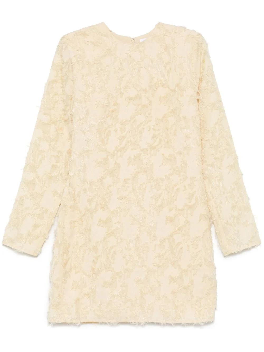 Sacatalpa mini dress Highlights - Pastel yellow - Concealed rear hook and zip fastening - Crew neck - Long sleeves - Frayed detailing Imported Composition Outer: Recycled Polyester 50%, Polyester 50% Lining: Polyester 100%