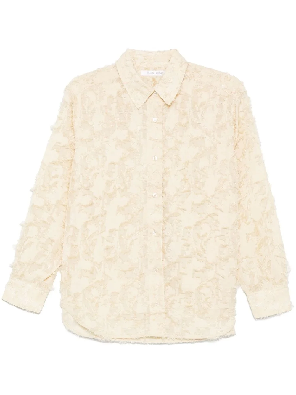 Sacatapalta shirt Highlights - Pastel yellow - Front button fastening - Buttoned cuffs - Frayed detailing - Long sleeves Imported Composition Polyester 50%, Recycled Polyester 50% SIZE & FIT Model measurements Height 5 ft 11 in(1.8 m) Bust/Chest 31.49 in(80 cm) Hips 36.61 in(93 cm) Waist 24.4 in(62 cm) FittingInformation Designed to be unstructured, offering a loose fit throughout Made from a midweight non-stretch fabric