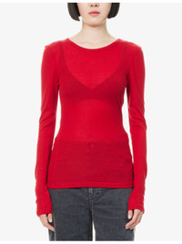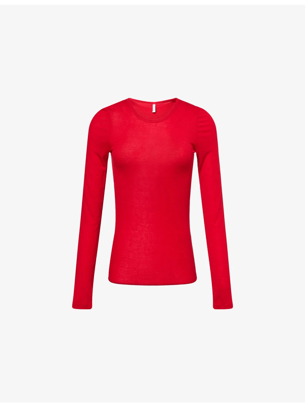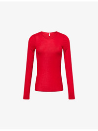 PRODUCT DETAILS - SamsOe & SamsOe woven T-shirt - 70% lyocell, 30% wool - Slim fit, round-neck, long sleeves, all-over ribbed - Hand wash cold - True to size - Model is 5ft 10in/1.78m and wears a size small - Lightweight, stretchy Ref: R04487304