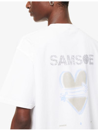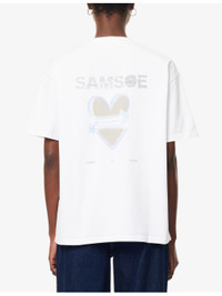 PRODUCT DETAILS - SamsOe & SamsOe cotton-jersey T-shirt - 100% cotton - Oversized fit, round neck, short sleeves, logo print at chest and back - Machine wash at 30°C - True to size - Model is 5ft 10in/1.78m and wears a size small - Lightweight, slight stretch Ref: R04487305
