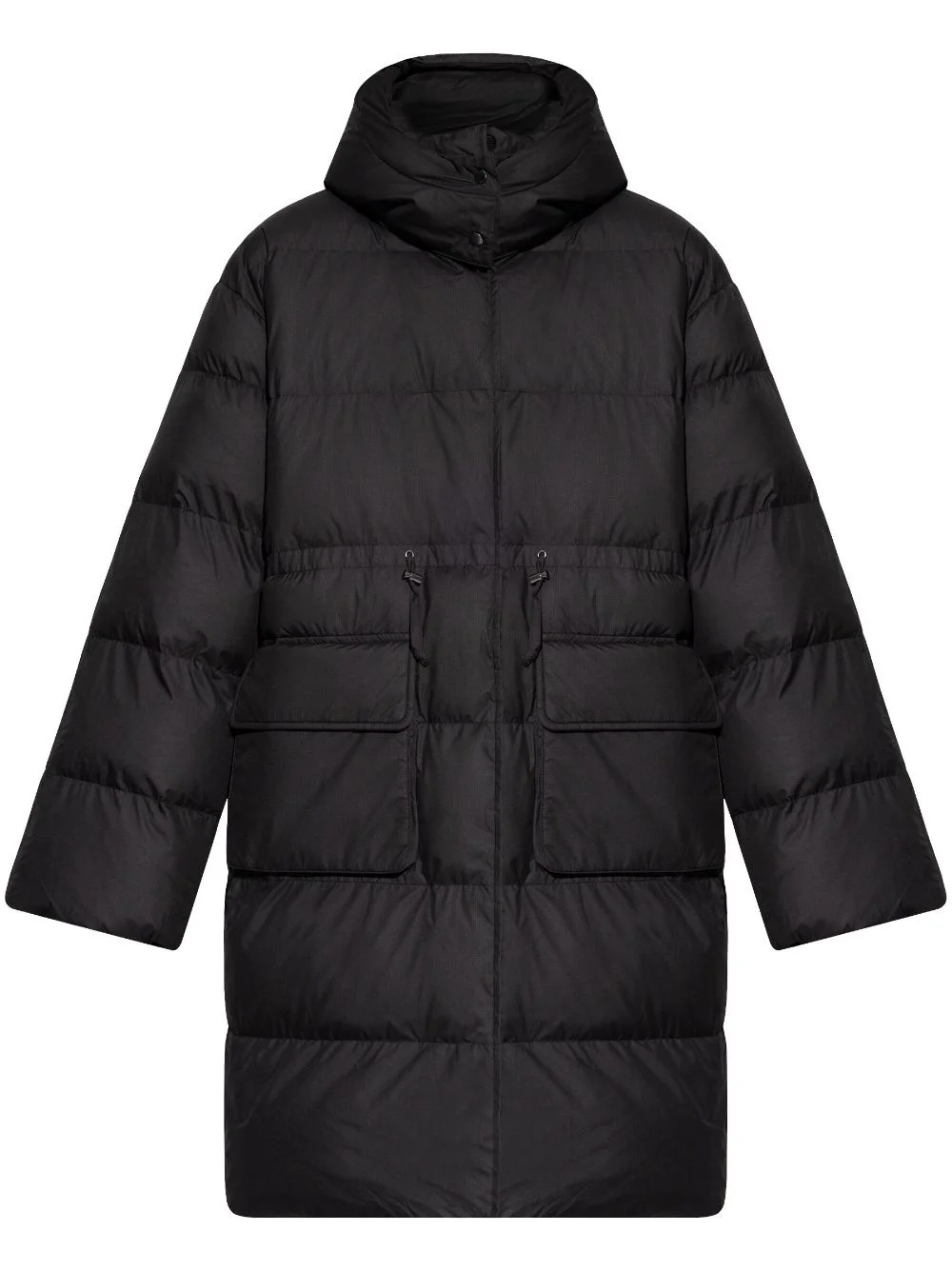 Sahanna puffer coat Highlights - Black - Padded design - Quilted - Front press-stud and zip fastening - Funnel neck - Detachable hood - Drop shoulder - Long sleeves - Drawstring waist - Two front flap pockets - Straight hem - Mid-length Imported Composition Polyester 100% Washing instructions Read Manufacturer Guidelines