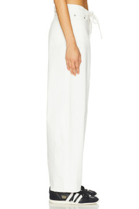 - 100% cotton - Machine wash - Zip fly with button closure - Attached waist tie.5-pocket design - Midweight denim fabric.24" at the knee narrows to 19" at the leg opening - Revolve Style No. SSAM-WJ4 - Manufacturer Style No. F25200007